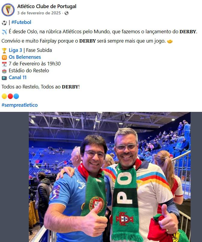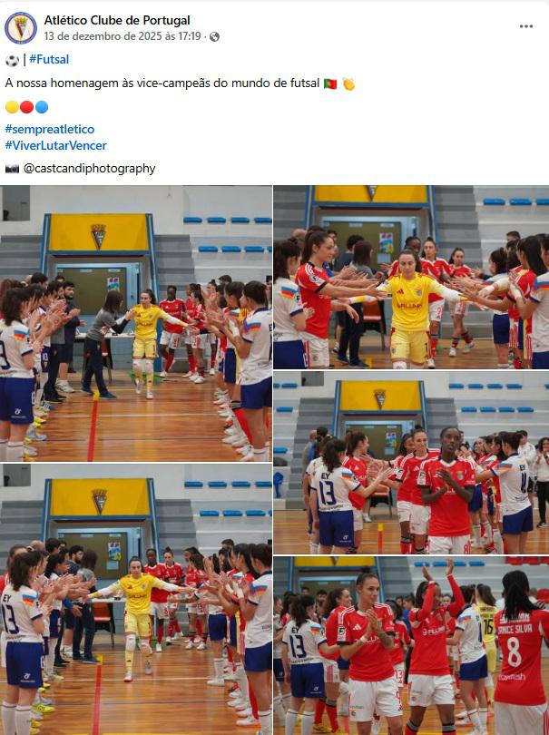 13 de dezembro 2025: Atlético CP x SL Benfica | 25 de outubro 2025: Novasemente GD x Atlético CP